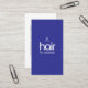 Minimale, vollständig anpassbare Visitenkartenvorlage mit weißer Schere/fett formatiertem Haartext und blauem Hintergrund. Elegantes und einfaches Design. Ideal für Schönheitssalon, Friseur, Friseur.