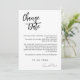Die "Change of Date Announcement Card" der Elegance Collection - eine anmutige und raffinierte Methode, Ihre Hochzeitspläne anzupassen. Diese Karte, inspiriert durch klare Linien und moderne Ästhetik, dient als raffiniertes Medium, um Ihren Gästen wichtige Updates zu übermitteln. An vorderster Front der Karte steht die fett gedruckte Aufschrift "Datum ändern", die sofort Aufmerksamkeit erregt und die Aufmerksamkeit signalisiert. Unmittelbar darunter vermittelt eine prägnante, aber nachdenkliche Botschaft die notwendigen Anpassungen an die bevorstehende Hochzeit und bietet Klarheit und Sicherheit in Zeiten des Wandels. Insbesondere wird das neue Hochzeitsdatum mit Eleganz angezeigt, sodass die Gäste über die überarbeiteten Details informiert werden. Die Ankündigung wird mit der Präsentation der Namen des Paares abgeschlossen, indem eine persönliche Touch zur Nachricht hinzugefügt wird. Die mit Präzision und Raffinesse erstellte Change of Date Announcement Card aus der Elegance Collection sorgt dafür, dass Ihre Hochzeitsaktualisierungen mit der gleichen Grazie übermittelt werden, die Ihre Liebe bestimmt. In Zeiten der Veränderung, lass die Eleganz dieser Ankündigungskarte reflektieren die bleibende Schönheit Ihres Engagements.