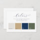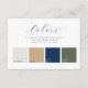 Diese klassische Karte bietet vier Armbanduhren für das Farbschema Ihrer Hochzeit. Sie können die Farbe jedes einzelnen im Zazzle-Editor bearbeiten. Elegante, dunkelblaue Schriftzeichen in Serif- und Script-Schriftart legen den Titel, die Anweisungen und die Beschriftungen für den Namen jeder Farbe fest. ⚠ Wenn Sie die Kalligraphie bearbeiten und Sonderzeichen verwenden, kopieren und einfügen Sie sie von dieser Seite: bit.ly/Emeline-Script ⚠ ・ Für weitere Hochzeitssuiten, besuchen Sie mein Geschäft Zazzle.com/EventsByJessicaAmber ・ ・ Für benutzerdefinierte Bestellungen, schreiben Sie mir auf Zazzle.