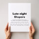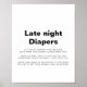 Dieses minimalistische elegante Spätabenddiapers Baby Duschzeichen ist perfekt für eine einfache Baby Dusche Feier. Das Design bietet einen schönen Schriftart, um Ihre Veranstaltung zu ergänzen
