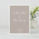 Einfache Einfachheit mit unserer modernen Hochzeitseinladung, die für das minimalistische Paar geschaffen wurde. Dieses stilvolle Design mit eleganter Schrift-Typografie auf einem raffinierten taupe Hintergrund wird von einem weißen Rahmen gerahmt. Diese zeitlose und trendige Einladung ist die perfekte Wahl, um Ihren besonderen Tag zu ergänzen.