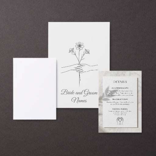 Sorgen Sie dafür, dass Ihre Gäste stilvoll antworten mit der Hochzeits-RSVP-Karte 'Eternal Bond'. Mit einem auffälligen, modernen Layout und einer minimalistischen Fine-Line-Art-Illustration von verbundenen Händen findet diese Karte die perfekte Balance zwischen künstlerischem Flair und funktionalem Design.