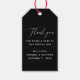 Fügen Sie Ihren Gastgeschenke Hochzeiten eine raffinierte Touch mit diesem eleganten Dankeschön-Tag hinzu. Set vor einem fett schwarzen Hintergrund, das Design bietet würdevolles Skript für ein zeitloses, formales Aussehen. Eine herzliche Botschaft spricht Ihren Gästen ihre Anerkennung aus und ist somit ideal für Hochzeiten, Veranstaltungen mit schwarzer Krawatte oder Abend-Empfänge. Dieses Gunst-Tag ist leicht an Taschen, Kisten oder Pfannkuchen anzubringen. Ideal für klassische, minimalistische oder moderne Hochzeitsstile.