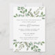 Diese trendige Brunch-Einladung nach der Hochzeit bietet einen Rahmen von reichlich grünen Blätter in Aquarellfarbe und ein paar kleine Beeren auf einem sauberen, weißen Hintergrund. Auf der Rückseite der Einladung steht auch "Wir sind Verheiratet" in eleganter Kalligrafie. Ideal für Ihren eleganten, minimalistischen Aufenthalt nach Hochzeit oder Feier.