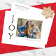 Sagen Sie es einfach mit diesen 4,25" x 5,6" Foto Postkarten mit dem Gruß "Joy" in weißen Buchstaben auf schwarzem Hintergrund. Fügen Sie einfach Ihr Lieblings-Foto, Namen und Jahr hinzu. Auf der Rückseite befinden sich Platzhalter für Ihre E-Mail-Adresse und eine optionale Nachricht.