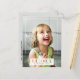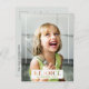 Einfache und saubere minimalistische Vorlage mit dünnen Linien Rand und Ausschneiden Freuden Text auf weißem Banner. Stelle für das Foto und die bearbeitbare Textzeile. Wählen Sie die Hintergrundfarbe auf der Kartenrückseite aus, um dem Foto zu entsprechen.