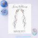 Dieses Stück ist raffiniert und anpassbar, ideal für einen Friseur, der sich auf Brautfrisuren spezialisiert hat. Es bietet einen Ort für einen maßgeschneiderten Namen in einem Skript, das das Wesen der minimalistischen Eleganz, maßgeschneidert für eine Hochzeitshaar Stylistin. Die berufliche Auszeichnung wird in einer sauberen, modernen Schrift deutlich, die den schicken, stilistischen Charme des Gegenstands unterstreicht. Im Mittelpunkt des Designs steht eine gestraffte Darstellung der Haare, die in einem Hochzeitshaar angeordnet ist und mit einem subtilen Kranz in der Blume geschmückt ist, der ein Symbol für das Handwerk eines Friseursalons darstellt. Dieses Produkt wurde entwickelt, um ein wesentliches Marketing-Tool für Fachleute zu sein, die ihr Know-how im Bereich Haarstyling und Bridal-Dienstleistungen zeigen wollen.
