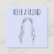 Dieses Stück ist eine raffinierte, anpassbare Referral Card, die sich perfekt für einen Friseur eignet, der sich auf Brautfrisuren spezialisiert hat. Es zeichnet das Wesen minimalistischer Eleganz auf, zugeschnitten auf einen Hochzeitshaar Stylisten. Die berufliche Auszeichnung wird in einer sauberen, modernen Schrift deutlich, die den schicken, stilistischen Charme des Gegenstands unterstreicht. Im Mittelpunkt des Designs steht eine gestraffte Darstellung der Haare, die in einem Hochzeitshaar angeordnet ist und mit einem subtilen Kranz in der Blume geschmückt ist, der ein hellblaues Kunsthandwerk eines Friseursalons darstellt. Dieses Produkt wurde entwickelt, um ein wesentliches Marketing-Tool für Fachleute zu sein, die ihr Know-how im Bereich Haarstyling und Bridal-Dienstleistungen zeigen wollen.