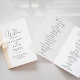 Dieses schicke, minimalistische gefaltete Hochzeitsprogramm ist perfekt für eine rustikale Hochzeit. Das einfache und elegante Design zeichnet sich durch klassische und extravagante Schriftzeichen in Schwarz und Weiß aus. Geben Sie ein Angebot oder eine kurze Nachricht, die Reihenfolge des Dienstes, Hochzeitsfeier und Dankeschön Nachricht.