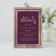 Ein modernes, minimalistisches Luxusgold und bordeauxfarbene Aquarell mit eleganter, handgeschriebener Goldtypografie. Diese Glam Trauung Details Card ist der perfekte Druck für jede Braut- und Bräutigam Hochzeitsveranstaltung. Passen Sie dieses Design mit Ihren Details und Monogramm Initial an.