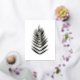 Diese moderne minimalistische botanische Illustration zeichnet sich durch ein schlichtes, in Goldfolie und Weiß zeichnend Blatt aus Palmblättern aus.