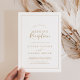Diese minimalistische Goldhochzeit-Einladung eignet sich perfekt für ein einfaches Party nach der Einführung. Das moderne romantische Design besticht durch klassische Goldtypografie und Weiß, gepaart mit einer rustikalen und eleganten Kalligraphie mit Vintagem handgeschriebenem Stil. Anpassbar in jeder Farbe. Behalt das Design einfach und elegant, wie es ist, oder personalisiere es durch Hinzufügen von eigenen Grafiken und Kunstwerken. RSVP-Karten werden separat verkauft, oder Sie können auf der Kartenrückseite UAWG info hinzufügen.