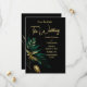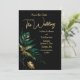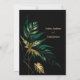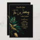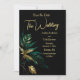 Diese Hochzeitskarte zeichnet sich durch ein elegantes, minimalistisches Design mit schwarzem Hintergrund und goldenem Text aus und schafft eine raffinierte und formale Ästhetik. Die Schrift- und Serif-Schriftart werden in einer ausgewogenen Komposition verwendet, was ihm ein modernes und dennoch klassisches Ambiente verleiht. Die untere links Ecke ist mit botanischen Illustrationen in Grün- und Goldtönen geschmückt, die dem Gesamtdesign eine Touch von Natur und Luxus verleihen. Die Gestaltung ist sauber und organisiert, um sicherzustellen, dass die wichtigen Details der Hochzeit klar kommuniziert werden. Personalisieren Sie die Karte mit Ihren Namen und Details der Hochzeit. Sie können die Karte auf Ihr mobiles Gerät oder Ihren Computer herunterladen. Die Karte wurde mithilfe von ai erstellt.