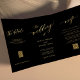 Minimalistische Goldschrift in einer Schwarzen Hoc Dreifach Gefaltete Einladung