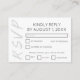 Das ist eine moderne, puristisch-weiße Vorlage für die RSVP-Karte für Hochzeitsfeiern, die Ihrer Dekoration eine Touch Eleganz verleiht. Die RSVP-Karte beinhaltet die Wahl der Mahlzeiten. Der gesamte Text ist anpassbar, sodass Sie den Text leicht ändern können. Wenn Sie gewollt haben, Schriftart und Farben zu ändern, Details hinzuzufügen oder zu entfernen, klicken Sie auf "Weitere Einstellungen vornehmen". Matching Hochzeitseinladungskarte ist auch verfügbar, Karo aus "Schwarz-Weiß-Wir Hochzeitskunde und Dekor" Sammlung in meinem Geschäft Wowweds.
