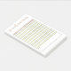 Dieser wöchentliche Gewohnheitswächter weist ein minimalistisches Tabellendesign auf, das in 20 Reihen für Gewohnheiten in abwechselnd blassem Weiß und Grün unterteilt ist, eine breite Spalte, um Ihre gewünschte Gewohnheit zu schreiben, und 7 schmale Spalten, um für jeden Wochentag eine Markierung zu setzen. Oben rechts in der Tabelle ist eine leere Vorlage, um das Datum der Woche, die Sie verfolgen, zu setzen. Unter der Tabelle befindet sich eine leere Vorlage für Notizen. Sie können den Textstil und die Textfarbe des Schriftartes sowie die Farbe der Zeilen im Entwurfswerkzeug anpassen.