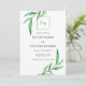 Diese modernen, minimalistischen Einladungen Save the Date mit einem klaren, weißen Hintergrund mit grünen Aquarellfarben-Blätter und schwarzem Text. Auf der Rückseite der Karte befindet sich Ihr eigenes Foto zum Bluten.