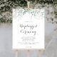 Dieses minimalistische Grün Eukalyptus ohne gesteckte Zeremonie Zeichen ist perfekt für eine rustikale Hochzeit oder Brautparty. Das Design zeichnet sich durch Aquarellfarben elegante grüne Eukalyptus-Blätter aus.