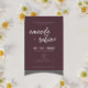 Machen Sie eine Aussage mit diesem Minimalistischen handgeschriebenen Script Wedding Invitation, mit einem eleganten modernen Kalligraphie-Schriftart auf einem dunklen Mochahintergrund. Eine perfekte Mischung aus zeitgenössischem und zeitlosem Design, diese Einladung zeigt wunderschön geschriebene Paarnamen, eine saubere Serifenanordnung und eine zarte Blumenillustrierung für eine romantische Touch. Ideal für moderne, rustikale oder boho Hochzeiten, ist diese Einladung vollständig an Ihren besonderen Tag angepasst. Ob Herbst, Winter oder Abend - dieses raffinierte Design wird Ihre Gäste beeindrucken.