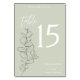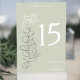 Minimalistische handgezeichnete Blätter bei grüner Tischnummer