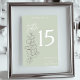 Eine schlichte und zeitlose Tischnummer mit handgezeichnet Eukalyptussprigs auf einem hellgrünen Hintergrund. Elegante Drehbücher und klassische Serif-Schriftart vereinen sich, um die Tischnummer zu unterstreichen. Sie beinhalten auch die Namen der Paare und das Hochzeitstag. Ideal für naturlich inspirierte oder minimalistische Hochzeiten mit romantischer Touch. Das gleiche Design auf der Rückseite und vorne.