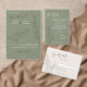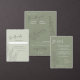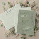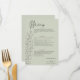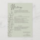 Eine zeitlose Hochzeitskarte mit von Hand gezeichnet Eukalyptus-Sprigs auf einem hellgrünen Hintergrund. Elegante Skript- und Serif-Schriftart verbinden sich, um die Menüdetails und die Namen der Paare zu markieren. Ideal für naturlich inspirierte oder minimalistische Hochzeiten mit romantischer Touch.