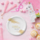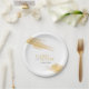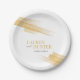 Minimalistische, goldbraune Farbtinte streichelt Hochzeitspapier-Teller. Weitere passende Elemente und Farboptionen sind verfügbar. © Original ink Pinselstrich Kunst und Design von Sarah Trett für www.mylittleedenweddings.com auf Zazzle.