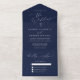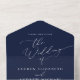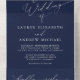 Schöne marineblaue minimalistische Hochzeitseinladung. Vollständig angepasst mit Namen, Daten, Ort und Farben, um Ihr Hochzeitstil zu gestalten.