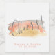 Hübsches, modernes, minimalistisches und trendiges Hochzeitsflaschenlabel mit drei farbigen Pinselstrichen in grauem und korallenfarbenem Text in modernen Schriftart