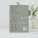 Erstellen Sie Ihre eigenen personalisierten Hochzeitskarten mit modernster Monogramm-Typografie und minimalistischem Grafikdesign in schlauer Grün.