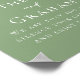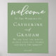 Dieses einfache, solide und grüne Hochzeitsplakat mit elegantem, weißem Drehbuch für eine Feier im Freien in einer natürlichen Umgebung. Minimalistische Typografie auf friedlichem, hellgrünem Dekor für einen rustikalen Ort außerhalb eines Waldes von Bäumen.