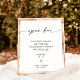 Minimalistische Hochzeit Open Bar Sign, Modernes B Poster