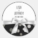 Einfach aber oh, so eleganter Hochzeitsaufkleber mit Polka-Punkten und einem Silberbogen, dass Sie mit Ihren Namen und Hochzeitsdatum personalisieren können. Verschiedene Größen verfügbar.