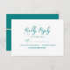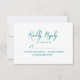 Minimalistische, moderne, weiße und aquamarine Hochzeitskarte mit goldenem Seilkern auf der Rückseite und einfaches handgeschriebenes Kalligrafieschreiben.