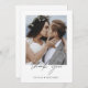 Unsere Minimalistische Hochzeit Dankeschön Foto Simple card ist der Inbegriff von Eleganz und Dankbarkeit. Mit einem gepflegten, schlichten Design und Platz für Ihr Lieblings-Hochzeitsfest-Foto, ist es der perfekte Weg, Ihren Dank an die Lieben auszudrücken. Personalisieren Sie Ihre Botschaft und senden Sie ein herzliches Dankeschön, das für die nächsten Jahre geschätzt wird. Egal, ob Sie sich bei den Gästen für ihre Anwesenheit, Geschenke oder Unterstützung bedanken, diese Karte bringt Ihre Dankbarkeit zeitlos und minimalistisch. Jede Karte wird mit viel Liebe zum Detail erstellt und sorgt für eine raffinierte Präsentation, die die Schönheit Ihres besonderen Tages widerspiegelt. Wir bedanken uns bei Ihnen mit unserer Minimalistischen Wedding Dankeschön Foto Simple card, einem perfekten Memento Ihrer Liebe und Wertschätzung.