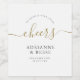 Elegante "Fröhlich nach" Hochzeit/Verlobung Weinflasche. Mit schicken Gold- und schwarzen Schriftzügen auf weißem Hintergrund mit minimalistischem, modernem und klassischem Typografie-Stil. Der gesamte Text ist personalisierbar, personalisiert mit den Namen von Ehepaaren/Braut und Bräutigam sowie dem Ort und Datum der Hochzeit/Verlobung. Ideal für Hochzeit/Verlobung Geschenk oder Gastgeschenk.