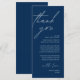 Dies ist die moderne bearbeitbare Karte, in minimalistischem Skriptdesign, klassisches marineblau Thema, Place Setting Dankeschön Karten. Teilen Sie die Liebe und zeigen Sie Ihre Wertschätzung für Ihre Gäste, wenn sie sich an ihren Sitz setzen und lesen Sie diese personalisierte charmante Dankeschön setzen Karte. Es ist eine wunderbare Art, Ihre Feier zu starten!