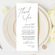 Dies ist die moderne bearbeitbare Karte, in minimalistischem Skriptdesign, Schwarz-Weiß-Thema, Place Setting Dankeschön Karten. Teilen Sie die Liebe und zeigen Sie Ihre Wertschätzung für Ihre Gäste, wenn sie sich an ihren Sitz setzen und lesen Sie diese personalisierte charmante Dankeschön setzen Karte. Es ist eine wunderbare Art, Ihre Feier zu starten!