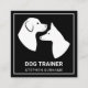 Stilvolles Design für Hundegehorsam-Trainer und andere Heimtierfirmen in Schwarz-Weiß-Farbschema. Das Design zeigt Desteis zwei Silhouetten, die sich gegenüberstehen. Eines der Hundeprofile ähnelt einem Labrador Retriever Rasse Hund, während das andere wie ein australischer Kelpie oder ein ähnlicher Hund mit spitzen Ohren aussieht. Personalisieren Sie die Textvorlagenbereiche mit den Details Ihres Unternehmens.
