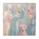 Dieses Bild ist eine pastellfarbene, abstrakte Abbildung einer Hundegruppe in verschiedenen Farbtönen weich rosa, blau, beige und grün. Die Komposition zeichnet sich durch elegante, stilisierte Darstellungen von Hunden mit minimalistischen, aber ausdrucksvollen Details aus. Der Hintergrund ergänzt die Figuren durch sanfte Gradienten und überlappende Formen und schafft eine traumhafte und künstlerische Atmosphäre. Die Gesamtästhetik vermittelt Ruhe, Einheit und ein modernes, künstlerisches Ambiente.
