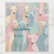 Dieses Bild ist eine pastellfarbene, abstrakte Abbildung einer Hundegruppe in verschiedenen Farbtönen weich rosa, blau, beige und grün. Die Komposition zeichnet sich durch elegante, stilisierte Darstellungen von Hunden mit minimalistischen, aber ausdrucksvollen Details aus. Der Hintergrund ergänzt die Figuren durch sanfte Gradienten und überlappende Formen und schafft eine traumhafte und künstlerische Atmosphäre. Die Gesamtästhetik vermittelt Ruhe, Einheit und ein modernes, künstlerisches Ambiente.
