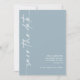 Minimalistische Kalligraphie QR Code Dusty Blue Wedding. Verfügbar in digitaler Form und gedruckt. Optionaler QR-Code auf Ihrer Hochzeitswebsite auf der Rückseite, der automatisch generiert wird, wenn Sie die Probe URL zu Ihrer eigenen Website ändern, URL ändern oder, falls nicht erforderlich, Beispielcode löschen. Stilvolle Set-Kalligraphie wird auf der links Seite gedreht, mit allen Details stilvoll auf der rechten Seite mit viel Weiß für ein zeitgenössisches Ambiente. Einfach mit Ihren Daten personalisieren. Und ändern Sie die Farbe von Text und Hintergrund, wenn Sie möchten über die editieren weitere Option.