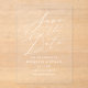 Mit unserer Minimalistischen Kalligraphie Wedding Save the Date verkünden Sie Ihren großen Tag stilvoll. Mit "Save the Date" in eleganter weißer Kalligrafie ist dieses schicke Design Set auf transparentem Acrylgrund und bietet eine moderne, zeitlose Ästhetik. Perfekt für Hochzeiten in jeder Jahreszeit, diese Acryl speichern die Dattelkarten sind vollständig mit Ihren Namen, Hochzeitsdatum und Ort, um sie einzigartig Ihren. Das minimalistische Design ergänzt eine Vielzahl von Hochzeitsthemen, von klassisch und formell bis modern und lässig. Fügen Sie Ihren Hochzeitsankündigungen eine Touch von Raffinesse hinzu, mit diesen schlanken, hochwertigen Acrylkarten, die einen bleibenden Eindruck verlassen haben. Beginnen Sie noch heute mit der Personalisierung, um den Ton für Ihre unvergessliche Feier Set!