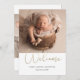 Moderne Geburtsankündigungskarte mit fünf Foto-Beilagen, begleitet von minimalistischer, vergoldeter Imitat-Folienskripte. Es kann mit Ihrer eigenen Nachricht und Babystatistiken personalisiert werden. Dieses moderne Design wird Ihr Baby Foto glänzen lassen!