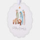 Minimalistische Krippe Glad Tidings Weihnachten. Ein handliches All-in-One-Ornament und eine Karte, mit einer charmanten modernen Krippenlandschaft Mary, Joseph, baby Jesus und Shepherd and Sheep, mit einer Linie von einem beliebten Carol, Glad Tidings of Great Joy in einem stilvollen modernen Drehbuch. Mit dem festlichen Gruß und den Namen auf der Rückseite, bereit für Ihre Empfänger von ihrem Baum hängen.