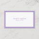 Visitenkartenvorlage mit einem schlanken, minimalistischen Lavendelrahmen lila auf einem knackigen, weißen Hintergrund. Dieses vielseitige Design eignet sich perfekt für jeden beruflichen, der eine doppelseitige Visitenkartenoption sucht.