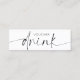 Minimalistische Gratis-Getränkegutscheine in elegantem Schwarz-Weiß-Design mit Kalligraphie-Script-Schriftart mit dem Aufdruck "drink". Fügen Sie Ihr Logo, Ihren Slogan und Ihre Website auf den Rücken, um Ihre individuelle Business Event Drink Gutscheine zu machen.