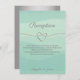 Einfache, elegante, silbergraue Textbriefe in Kombination mit elegantem, wasserfarbenem, minzgrünem Hintergrund und einem klassischen silbernen Seilherz. Moderne, minimalistische Hochzeitskarte mit stilvoller silberner Rückseite. Perfekt passend zum Hochzeitsthema "Krawatte der Knoten"!