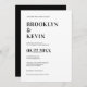 Moderne, minimalistische und einfache aber elegante Einladungen für Hochzeiten. Delikate Einladungen für Hochzeitsfeiern, perfekt zu jeder Jahreszeit und zu jedem Thema. Farbe: Schwarzer, weißer QR CODE für UAWG. Leicht bearbeitbarer Text, Schriftart, Farbe und Größe. Raum zum Hinzufügen von Hochzeitswebsite und Monogramme im Hintergrund. Entsprechende Schreibwaren in der Sammlung 'BROOKLYN'