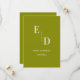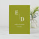 Minimalistische moderne, elegante Mongram Wedding rettet das Datum. Das Design hat einen eleganten Moosgrün Hintergrund mit Hochzeitsdetails in weiß und in einem eleganten Schriftart geschrieben. Die Vorderseite der Karte hat Monogramm-Initialen der Braut und des Bräutigams und die Rückseite der Karte hat alle Details. Versenden Sie diese niedlichen eleganten modernen minimalistischen laden zu Freunden und Familie ein. Passen Sie es an, indem Sie das Monogramm , die Namen des Paares und andere Details ändern. Diese Einladung ist Teil einer Sammlung . Karo out koordinieren Speichern Sie die Datumskarten , RSVP-Karten und Dankeschön Karten in der Sammlung. Für weitere Anpassungen wenden Sie sich bitte an mich unter mypaperlove2021@gmail.com
